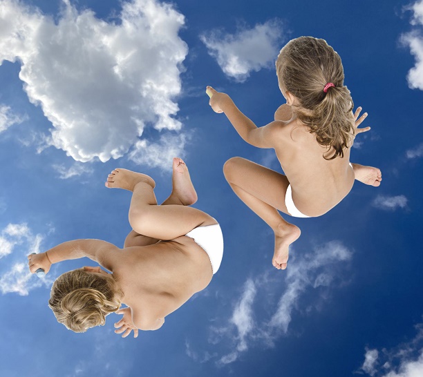 L’opera si compone dell’immagine di due bambine riprese nell’atto di disegnare il cielo con due grandi gessi: uno di colore bianco e uno azzurro. Dispettose ed irriverenti si divertono a cambiare continuamente il cielo, a disegnare le nuvole che i grandi cercano di capire, a mostrare le stelle che ci permettono di navigare.