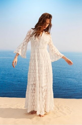 Per le notti d’estate, abiti midi o maxi, come lo chemisier in una nuance di verde intensa, o il lungo abito in pizzo romantico.