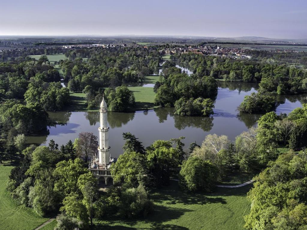 Vale la pena salire i 302 scalini che conducono in cima, da cui si può ammirare un favoloso panorama a 360° sull’intera l’area. Tra gli altri edifici del parco culturale vi è il Castello di Jan, voluto da Luigi I del Liechtenstein, fu costruito direttamente in forma di rovine per dare alla nobile famiglia l’impressione di possedere ruderi di un antico maniero. Tra le sue mura, volute sin dal progetto semi-diroccate, si riunivano gli invitati per banchettare dopo le battute di caccia. Nel parco è presente anche una cappella votiva in onore di San Uberto, protettore dei cacciatori.