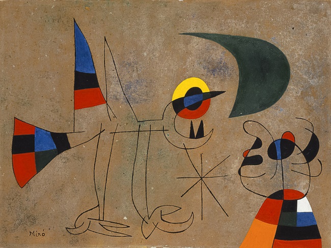 Immagine 4 – Joan Miró, Le Chant de l’oiseau à la rosée de la lune, 1955, olio su cartone. Foto Joan Ramon Bonet. Archivo Successió Miró. © Successió Miró, by SIAE 2021