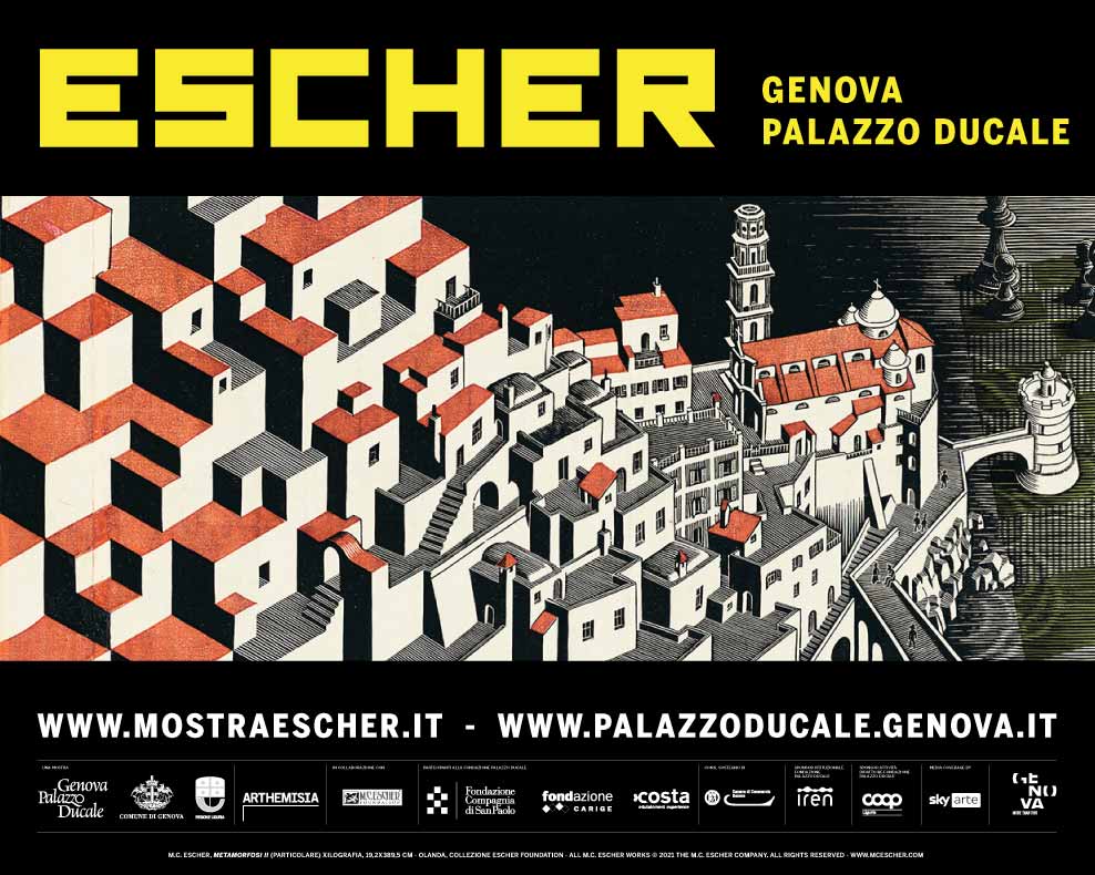 Dal 9 settembre 2021 Palazzo Ducale a Genova ospita, nelle sale dell’Appartamento del Doge, la più grande e completa mostra antologica dedicata al grande genio olandese Maurits Cornelis Escher, oggi uno degli artisti più amati a livello globale e i cui mondi impossibili sono entrati nell’immaginario collettivo rendendolo una vera icona del mondo dell’arte moderna.