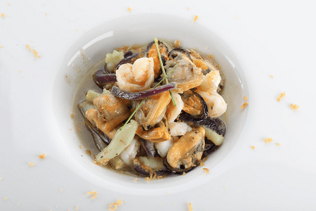 Carnaroli di Sibari con brunoise di Zucchine, Pescatrice, crema di Zucca e Tartufo Silano