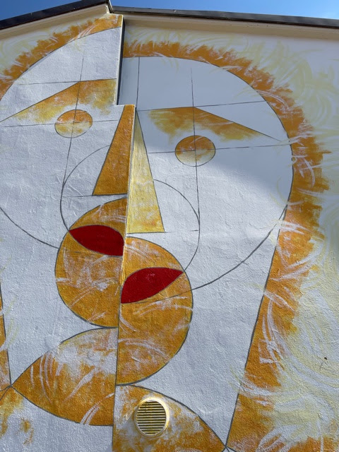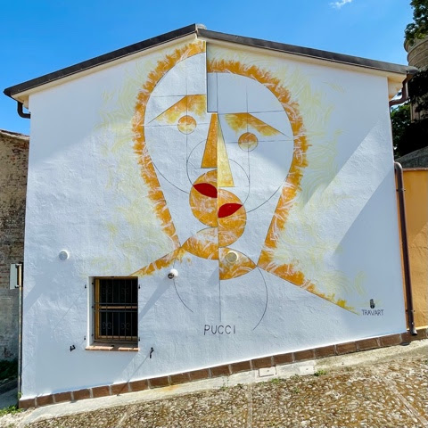 Strettamente legato alla storia di Mondolfo è invece l’intervento di Simone Travaglini, in arte Travart, che ha trasposto su muro un’opera di Giancarlo Pucci, professore di disegno geometrico e artista visionario. Quello stesso muro in cui a pochi passi abita Mezzafaccia, che è anche il titolo del murales.