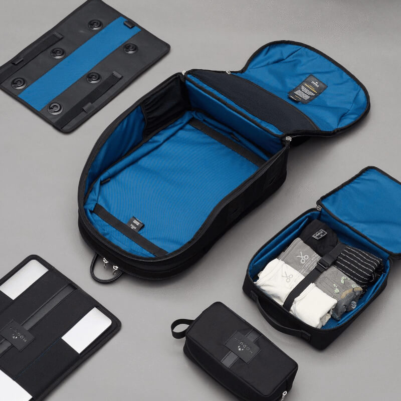Al Milano Backpack basico si potranno aggiungere i vari “moduli”, gli accessori che si uniscono allo zaino principale per renderlo più simile a ognuno di noi: dal mini beauty case/porta caricabatterie, alla borsa pensata per contenere il launch box, fino alla busta per il laptop.