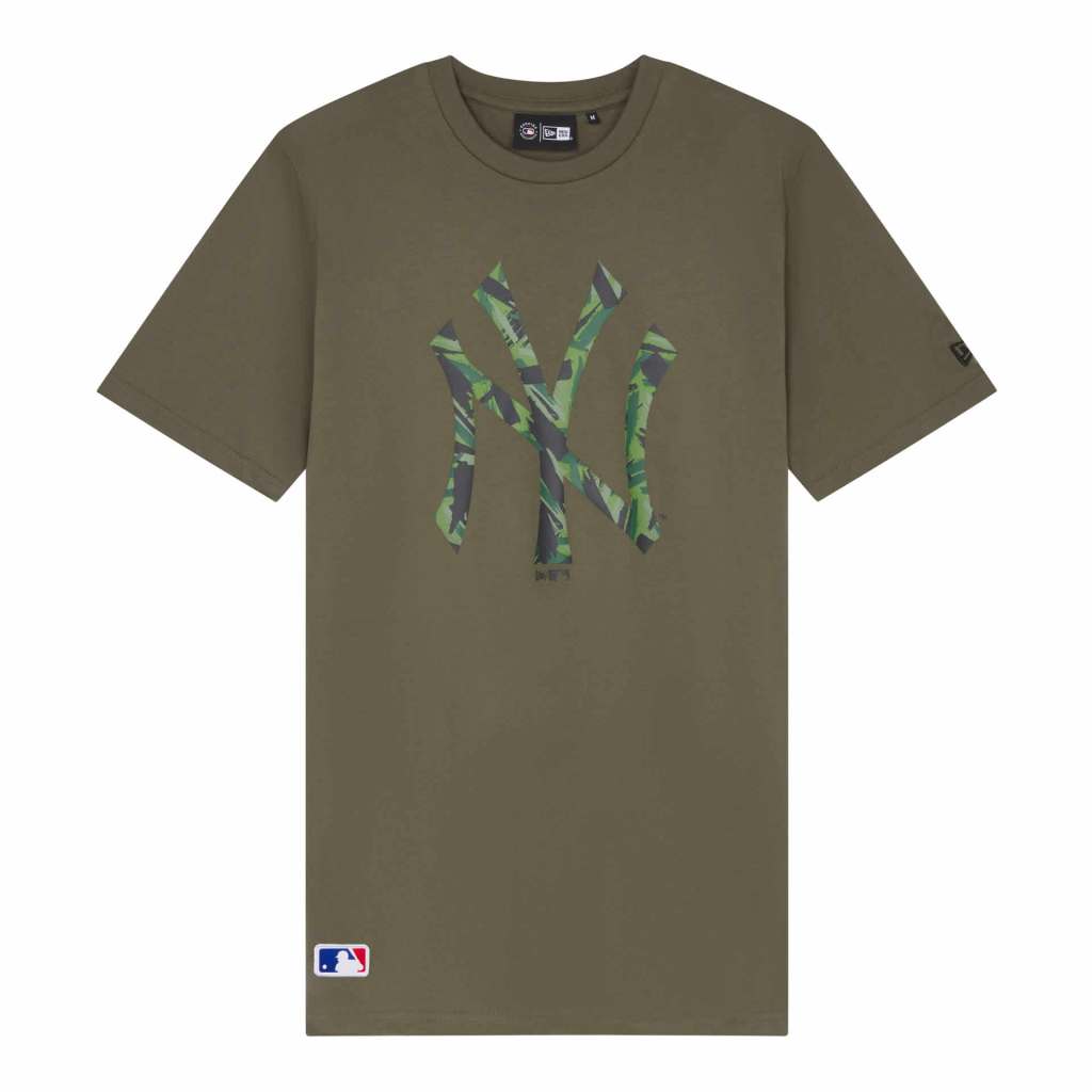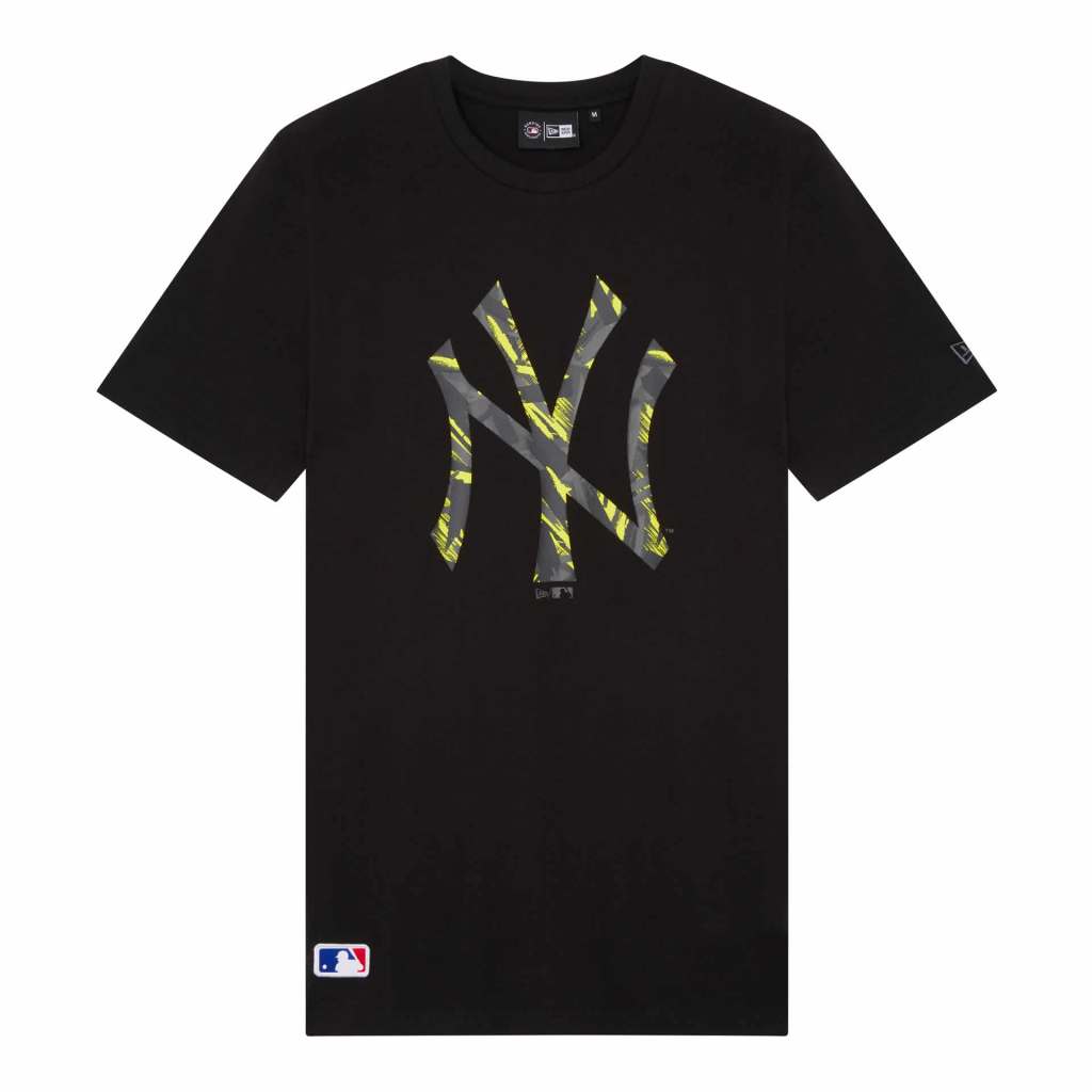 In un mix di tonalità ispirate alla natura selvaggia e alle periferie urbane, con improvvise chiazze di colore, questa stampa espressiva colora i loghi della MLB (Major League Baseball) nella collezione di t-shirt di cotone e 9FORTY.