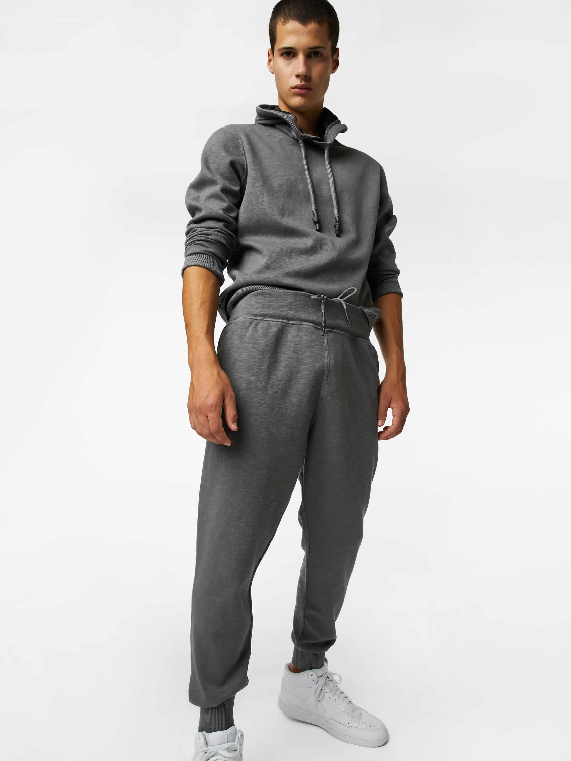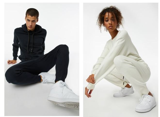 Il fit è ovviamente rilassato e tutti i materiali sono in tricot effetto felpa morbida e confortevole.