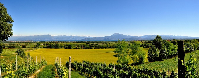 Viti e ulivi si alternano sulla sponda bresciana del Lago di Garda, e nell’immediato entroterra, dove si snoda la Strada dei Vini e dei Sapori del Garda. Un solare e fertile paesaggio mediterraneo punteggiato da antichi borghi, imponenti castelli, caratteristiche cittadine lacustri, in cui sono incastonate cantine, frantoi, agriturismo, tipiche trattorie ed eleganti ristoranti. Lo si può scoprire seguendo gli itinerari automobilistici scaricabili dal sito www.stradadeivini.it (che si snodano ad esempio in Valtènesi, fra le colline moreniche della sponda meridionale del lago, nel tratto da Sirmione a Salò, nel Parco dell’Alto Garda), oppure pedalando in relax lungo il percorso di una trentina di km fra i vigneti della Lugana.Sono le zone di produzione di importanti e apprezzati vini a Denominazione d’Origine Controllata.