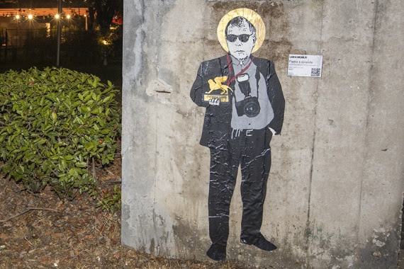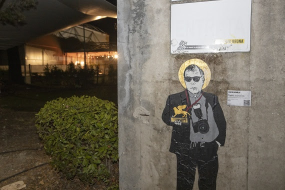 Accanto al Palabiennale dove è in corso la 78. Mostra Internazionale d’Arte Cinematografica di Venezia è apparso un omaggio al fotografo scomparso nel 2019.