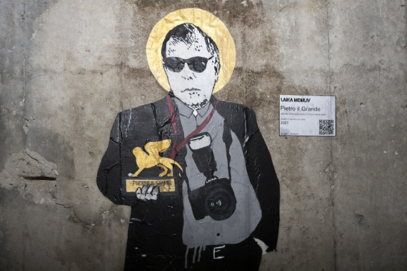 Venezia, 3 settembre, ore 22 circa, al Lido di Venezia, nel cuore della 78. Mostra Internazionale d’Arte Cinematografica di Venezia, accanto al Palabiennale, è apparsa una nuova opera della street artist Laika che torna ad omaggiare, dopo quasi due anni, il fotografo Pietro Coccia, scomparso nel 2019.