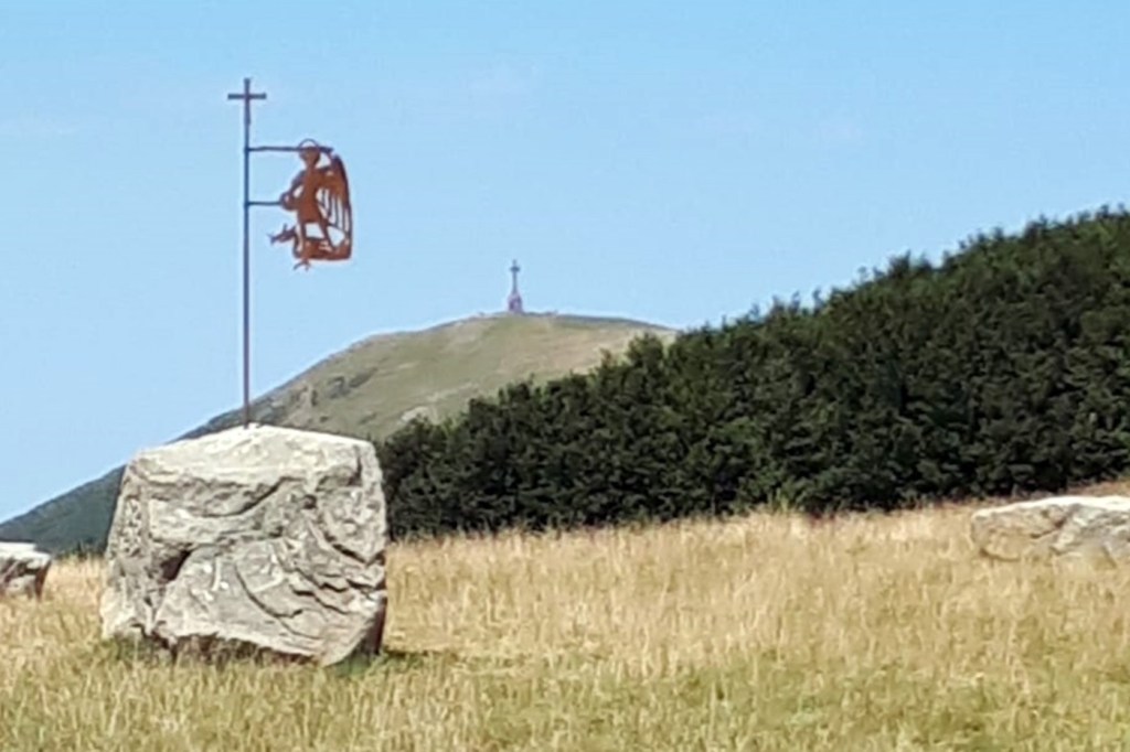 Pozza Nera si trova lungo la Grande Escursione Appenninica ed è il crocevia di alcuni sentieri provenienti dai diversi versanti del Pratomagno da cui, ogni anno, transitano migliaia di camminatori. Questo laghetto è infatti all’incrocio tra i Comuni di Ortignano Raggiolo, Loro Ciuffenna e Castel Focognano, e offre una delle vedute panoramiche più suggestive che spazia dalle vallate di Casentino e Valdarno fino al lago Trasimeno. Nei secoli scorsi, invece, è stato un luogo di importanza cruciale per la transumanza tra le praterie del Pratomagno e la Maremma, con il piccolo specchio d’acqua di Pozza Nera che permetteva l’abbeveraggio dei greggi di pecore. L’installazione del cippo, dunque, è stata animata dalla triplice finalità di rendere ben visibile e valorizzare questo luogo sul crinale, di fornire un’informazione ai camminatori e di ricordare secoli di pastorizia e di transumanza.