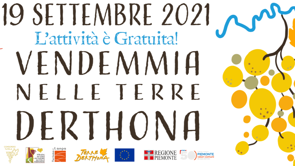 Vendemmia è un’iniziativa nata in Langa nel 2003 dalle Associazioni Turismo in Langa di Alba e Monregaltour di Mondovì che torna – dopo il successo dell’edizione 2020 – in una versione inedita nelle Terre Derthona grazie al Consorzio Tutela Vini Colli Tortonesi e alla Strada del Vino e dei Sapori dei Colli Tortonesi con il sostegno FEASR Fondo europeo agricolo per lo sviluppo rurale – l’Europa investe nelle zone rurali Programma di Sviluppo Rurale 2014- 2020 Sottomisura 16.4.