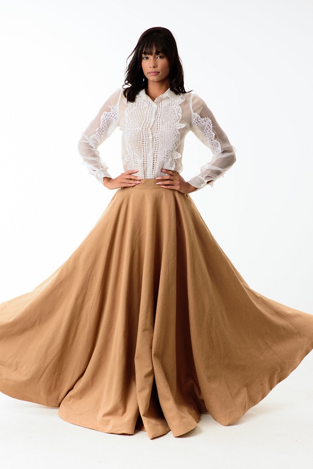 “La collezione è stata progettata per riunire diversi talenti partner del marchio”, spiega Francisca Vieira, CEO di Natural Cotton Color. I pezzi creati da Rafael Lemos sono stati modellati da Raquel Grassi. La sfilata presenta anche le borse di Makano e le calzature di Flavia Vanelli di Rato Roi, i tessuti usati sono stati realizzati in partnership con le fabbriche tessili Ecosimple e Unitextil.