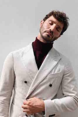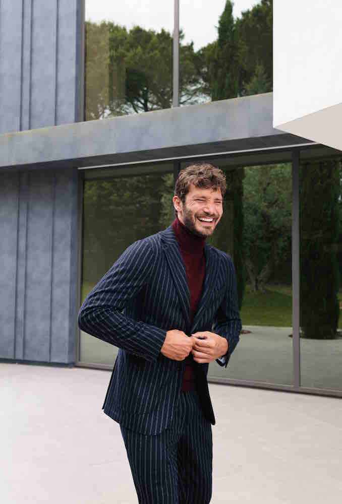 Una miscela perfettamente bilanciata tra stile partenopeo e tipico aplomb anglosassone, che si svela anche nella scelta di tessuti specialissimi come quelli dello storico lanificio biellese Vitale Barberis Canonico. Per una stagione nella quale la versatilità è cruciale, essenziali sono i capi-chiave in grado di aprire le porte di un guardaroba multi-sfaccettato; blazer doppiopetto, completi di lana gessata, giacche checked, suit pied-de-poule, tutti indossati con pullover dolcevita di cashmere sottile e lana a tinte contrasto.