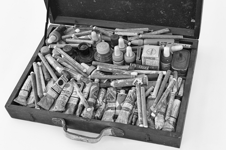 Pino Pascali nasce a Bari nel 1935 da genitori di Polignano a Mare. Diplomatosi a Napoli presso il liceo artistico, nel 1956 si iscrive all’Accademia di Belle Arti di Roma, dove segue il corso di scenotecnica di Toti Scialoja. In questi anni inizia a lavorare come aiuto scenografo in alcune produzioni RAI e collabora come scenografo e grafico per la pubblicità televisiva con la Lodolofilm, fino al 1967. Nel 1965 la sua prima mostra personale presso la Galleria La Tartaruga di Plinio De Martiis a Roma e, nel 1966, espone le Armi presso la galleria di Gian Enzo Sperone a Torino. In questi anni inizia la produzione delle prime opere in tela centinata, alcune delle quali presentate in occasione del Premio Avezzano e presso L’Attico di Fabio Sargentini. Nell’estate del 1967 presenta le opere del nuovo ciclo Elementi della natura: 9 mq di pozzanghere, 1 mc. e 2 mc. di terra; un mese dopo, a Foligno, presenta 32 mq di mare circa. Segue la personale presso la galleria milanese di Alexander Iolas, dove espone le finte sculture e le opere di terra e paglia.