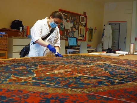 Il progetto di recupero è stato infatti concepito anche con una finalità didattica significativa: un’occasione fondamentale per coinvolgere gli studenti nelle principali problematiche legate agli aspetti teorici e pratici della conservazione dei tappeti.