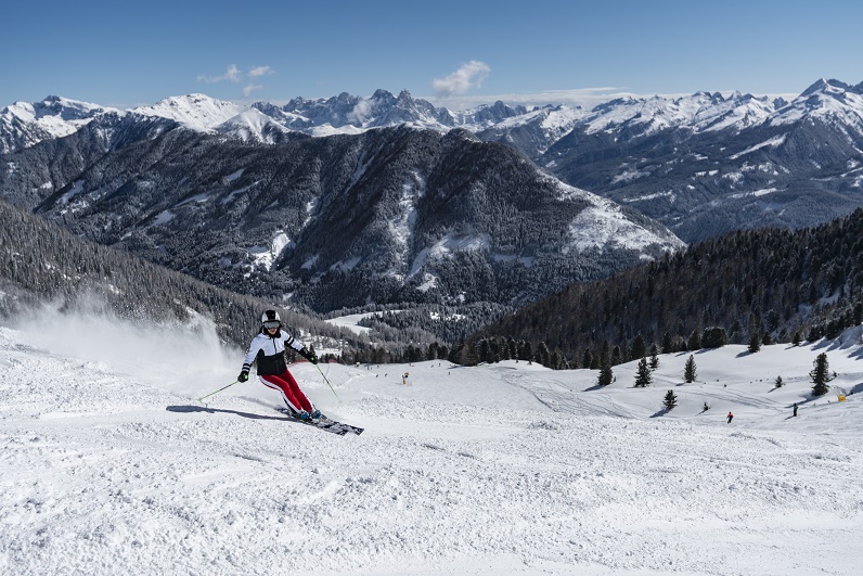 A Carezza, considerata l’aera sciistica più amata dalle famiglie e dai bambini – che possono esplorare tutto il giorno il regno del sovrano dei nani delle Dolomiti tra scuole di sci, aree per lo svago, una pista a tema, un ricco programma di attività e una sala giochi – il sipario si apre il 27 novembre 2021, svelando tanti chilometri di piste di tutti i colori ma comunque servite ininterrottamente da 12 impianti di risalita. Chi trascorre più di un giorno a Carezza può inoltre estendere il divertimento anche ai tracciati del comprensorio sciistico associato della Val di Fassa. A quel punto, i chilometri delle piste diventano 110, e gli impianti di risalita 54, per un totale di sei aree sciistiche. Dopo il fisiologico warm-up dell’anno scorso, la cabinovia “Re Laurino”, con stazione a monte invisibile e copertura del percorso fino al rifugio Coronelle, si prepara a mostrare la propria potenza di fuoco. A essa, si aggiungono seggiovia Tschein – prolungata fino alla Moseralm – il suggestivo punto di vista al Laurins Lounge – a 2337 m di altitudine, il locale panoramico più vicino al sole che ci sia in Alto Adige – e lo skibus che collega il comprensorio a Obereggen e Nova Ponente. Raggiungibile comodamente e velocemente con la cabinovia dal paese di Nova Levante, anche Carezza ha potenziato il proprio impianto di innevamento, offrendo agli amanti degli sport invernali più esperti e a quelli in erba la sicurezza di piste accattivanti e innumerevoli possibilità di praticare snowboard, slittino, sci di fondo, escursioni con le racchette da neve e freestyle.
