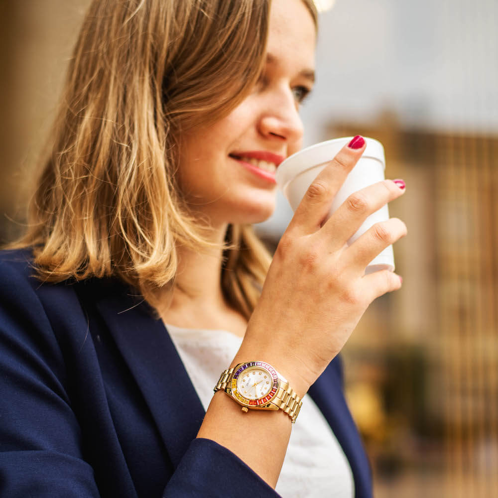 A rifinire il “segnatempo gioiello” con eleganza e rigore la cassa tonda dal diametro di 33mm, il bracciale a 3 maglie (tutto con finiture lucide e satinate) ed una chiusura personalizzata, il tutto disponibile in color oro o argento, o ancora in un mix dei due metalli.