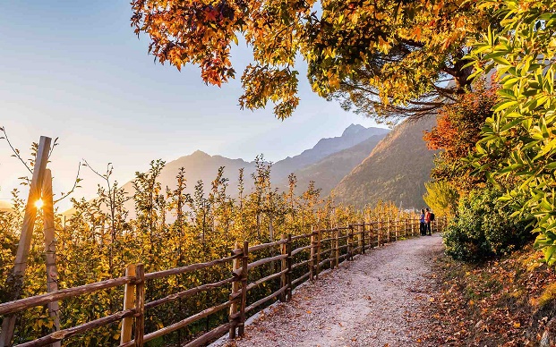 Un altro luogo in cui fotografare il foliage a Tirolo è il sentiero della roggia di Caines, da cui si possono ammirare gli alberi del bosco con le chiome dalle varie sfumature, oppure anche la passeggiata Falkner verso Castel Tirolo, con una splendida vista sulla Val d’Adige e sui meleti e vigneti del territorio che rendono il paesaggio dorato.