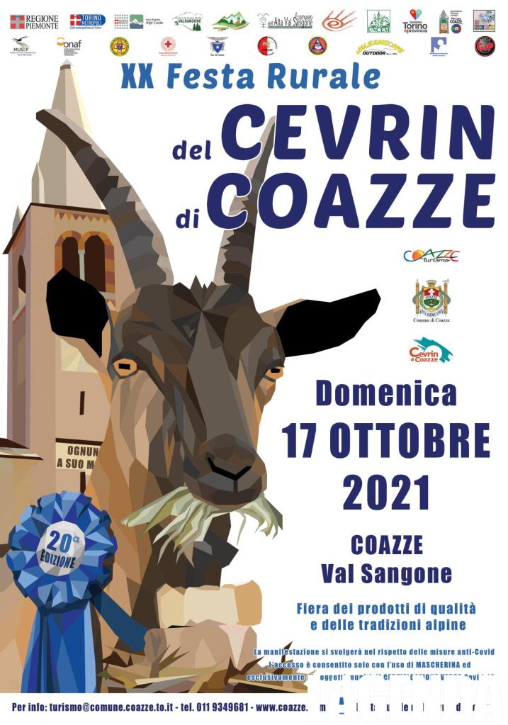 Domenica 17 ottobre a Coazze ritornerà la Festa Rurale del Cevrin, giunta alla ventesima edizione. Nata nel 2000 dalla collaborazione tra l’associazione dei produttori del formaggio Cevrin, il Comune e le associazioni del territorio, la Festa patrocinata dalla Città Metropolitana di Torino riprende dopo il blocco dell’anno scorso dovuto all’emergenza Covid. L’amministrazione comunale, insieme all’ufficio turistico, alle associazioni e ai commercianti del paese, possono finalmente dare il via ai festeggiamenti, ovviamente nel rispetto delle disposizioni per la prevenzione del Covid.