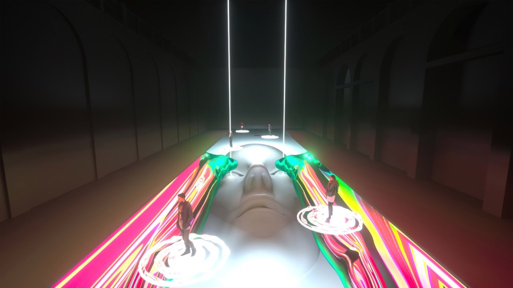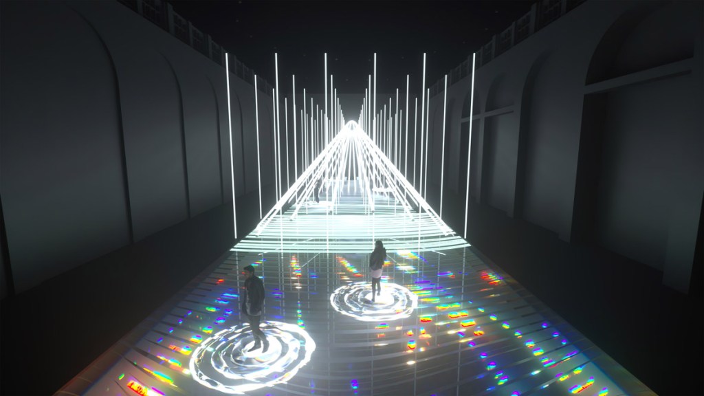 Il primo sarà diviso in cinque loop che gradualmente ci immergeranno in altrettanti momenti suggestivi e generativi come una pioggia di stelle o la crescita di elementi naturali, in cui la presenza e i movimenti delle persone interagiranno direttamente modificandone i pattern e gli sviluppi. Quello che vedremo e sentiremo non sarà un copione fisso e reiterato, ma ogni volta un atto creativo nuovo e originale frutto della relazione tra umano e digitale.