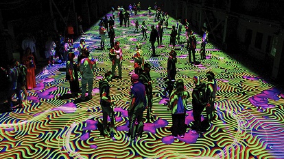 L’idea? Realizzare un’opera d’arte digitale che trasformi l’ambiente rendendolo vivo dove la forza dei giochi dei fasci di luce si incontrano alle proiezioni mapping in grado di immergere e totalizzare con immagini 3D ed effetti unici capaci di animare il pavimento al passaggio dei visitatori. Le persone saranno parte integrante ed attiva dell’opera. Modificatori. Attori coinvolti in un viaggio in due atti.