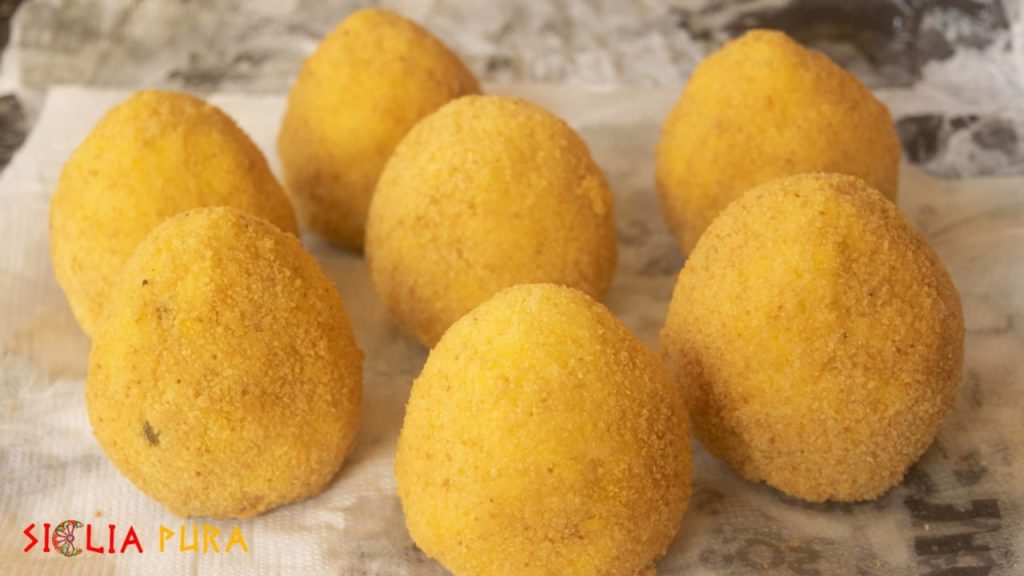 Come abbiamo detto per le arancine è indispensabile lo zafferano al quale si aggiunge il ragù di carne e una panatura croccante fatta con acqua, farina e pan grattato.