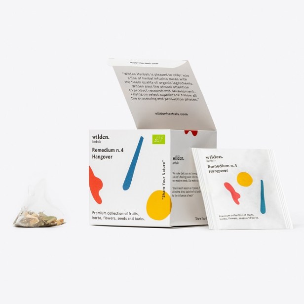 la Tisana Remedium n.4 – Hangover di Wilden.Herbals, un infuso biologico che, grazie alle sue 12 erbe e alle spezie, è pensato appositamente per stimolare l’azione sinergica a favore di fegato, stomaco e intestino, per donare una sensazione rigenerante e per ripartire al meglio dopo una serata di festa.