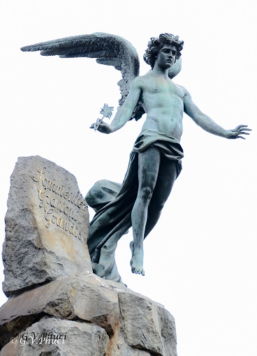 Nello spirito positivista dell’epoca in cui il monumento fu realizzato la statua rappresenta un’allegoria del trionfo della ragione sulla forza bruta.