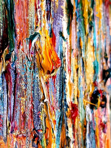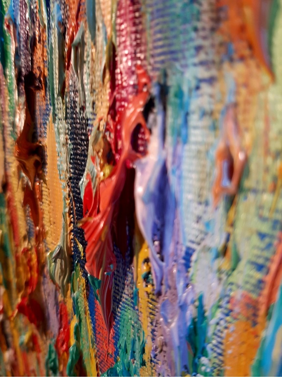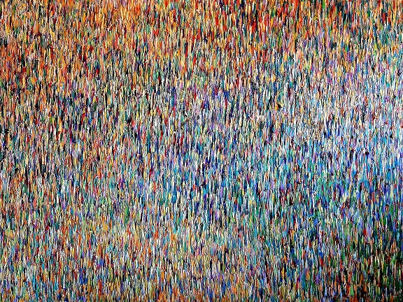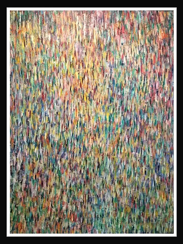 La tecnica di Guido Rocca infatti è molto peculiare: le sue tele sono composte da migliaia di pennellate sottili e materiche che si sfumano tra l’oro, sono cosi ricche di movimento e tonalità differenti che sembrano vibrare come se avessero una vita propria.
