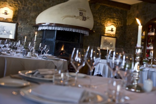 La sera, raffinata cena al lume di candela davanti al fuoco del camino del ristorante gourmet La Tavernetta al Castello, ricavato dalla ristrutturazione di un antico casolare ai piedi del maniero.