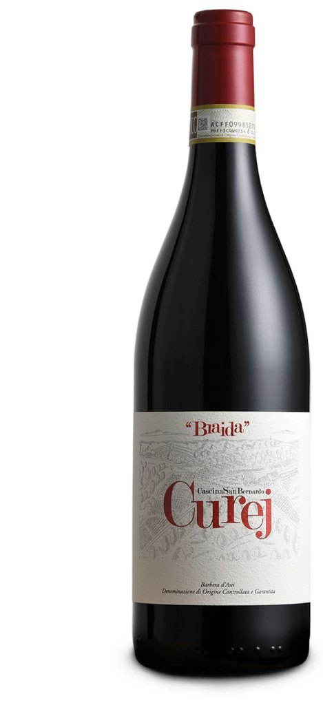 “Vogliamo che questa terra dica: Barbera. È ciò che abbiamo pensato guardando, qualche anno fa, verso la collina dell’Asinara. Ci sarebbe piaciuto che, immersi in uno scenario naturale di vigneti, boschi e prati, i nostri visitatori potessero fare un’esperienza di degustazione unica e memorabile. Per questa ragione abbiamo acquistato e ristrutturato il cascinale di San Bernardo, che oggi ospita il Braida Wine Resort. L’analisi dei terreni ha confermato la bontà delle nostre intenzioni: l’altitudine e la ventilazione costante favoriscono sul crinale dell’Asinara la crescita di un’uva sana. Così abbiamo circondato il Resort di vigne di Barbera. Il rispetto che portiamo a questa terra ci ha imposto di valorizzarla nella sua autenticità più piena e sincera: il vino che ne è nato – prima vendemmia 2019, 8.000 bottiglie; a marzo in uscita la vendemmia 2020 – porta in etichetta il nome “Curej”, che è il soprannome delle famiglie che da sempre abitano e curano una piccola località di Rocchetta Tanaro, dove già nel Settecento i monaci praticavano la viticoltura. Il termine curej potrebbe derivare da cureja, la cintura dei pantaloni o la lunga cinghia che veniva utilizzata nelle macchine per battere il grano. Altri pensano che potrebbe derivare dai gurej, i gorreti, ovvero gli arbusti spontanei che nascono lungo il Tanaro usati per fabbricare le ceste” così affermano dalla casa vinicola Braida di Rocchetta Tanaro, in provincia di Asti.