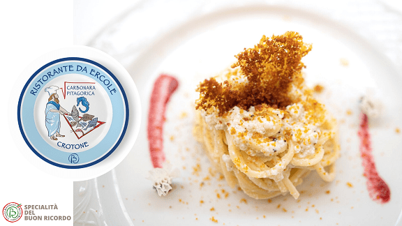 Oggi vi proponiamo la ricetta della Carbonara pitagorica presentata dal Ristorante da Ercole di Ercole Villirillo a Crotone (Calabria) ed abbinato al Piatto del Buon Ricordo.
