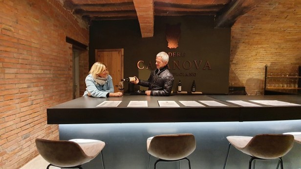 Un locale ricco di fascino, enoteca e punto vendita dei vini aziendali e delle esperienze che si possono fare a Podere Casanova (la cui cantina immersa fra le vigne si trova a una decina di minuti d’auto, all’imbocco della Val di Chiana), piacevole luogo di sosta per un gustoso break a base di vini eccellenti e prodotti del territorio, nonché galleria d’arte dove sono esposte opere di pittori e scultori contemporanei.