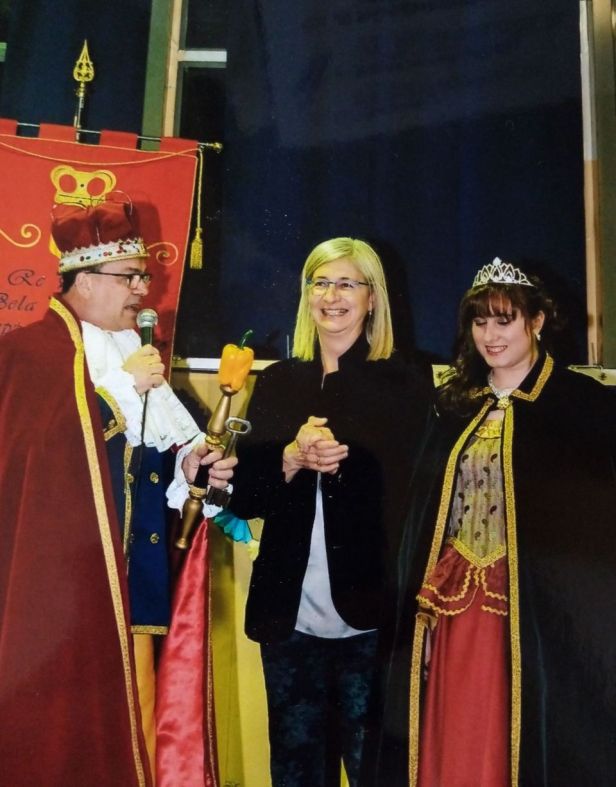 Karin Borga veste i panni della Bela Povronera da sei anni ed accompagna il re Peperone in quasi tutti i suoi appuntamenti in giro per l’Italia e in vari periodi dell’anno.