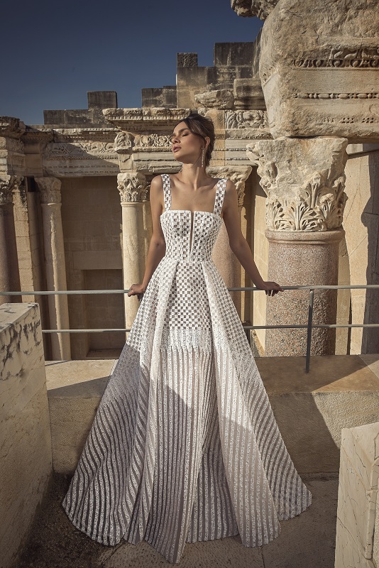 La collezione “Fingerprints”di Saleh Zini racconta le ispirazioni avute da spose bellissime incontrate nel suo cammino, personalità che il designer interpreta celebrando l’arte della seduzione e della eleganza in outfit che hanno il potere di sospendere il tempo, abiti leggeri, avvolti in tessuti naturali, all’insegna della consapevolezza e il rispetto per l’ambiente, colori che le accompagnano nelle tante e diverse sfumature del bianco che, come disegni intrappolati, creano i dettagli che definiscono l’unicità della collezione.