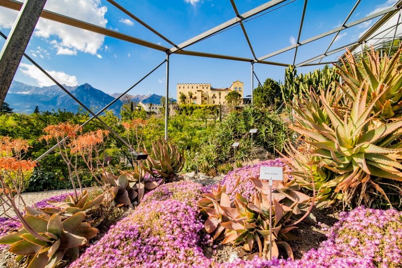 Suddivisi in quattro aree tematiche, i Giardini di Castel Trauttmansdorff presentano, su una superficie di 12 ettari, più di 80 paesaggi botanici con piante da tutto il mondo. La loro posizione panoramica è unica: a forma di anfiteatro naturale, si estendono su un dislivello di oltre 100 metri, aprendo a ogni passo affascinanti prospettive panoramiche sulle montagne circostanti e sulla città di Merano e integrandosi con perfetta armonia nel paesaggio naturale circostante. Grazie al clima mite del territorio, quello dei Giardini di Castel Trauttmansdorff è il luogo ideale per un giardino botanico, offrendo la possibilità di ospitare piante provenienti da tutto il mondo, alcune delle quali sono esemplari rari. Meravigliosi tripudi di fioritura cambiano l’aspetto dei Giardini settimana dopo settimana, rendendo le visite affascinanti in ogni stagione.