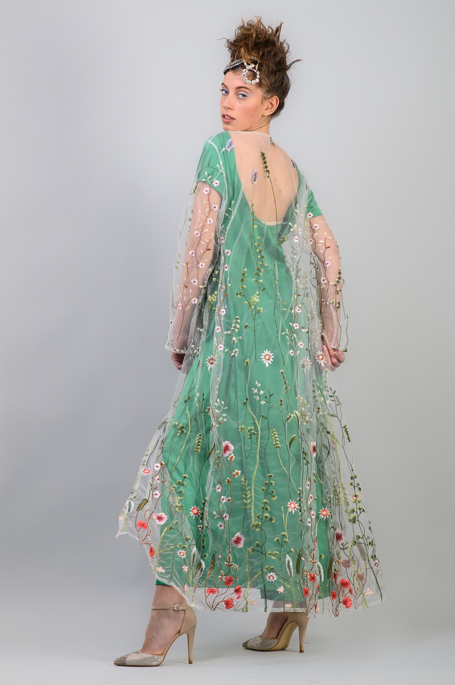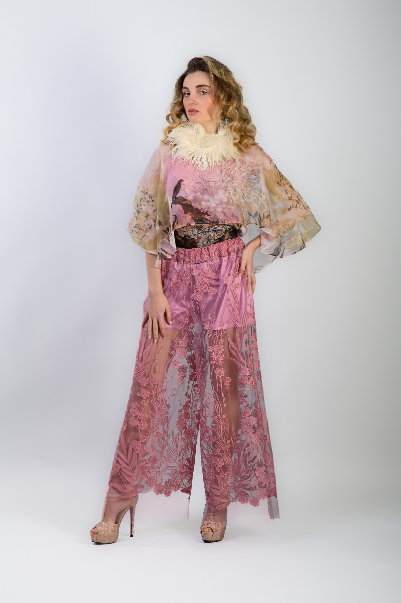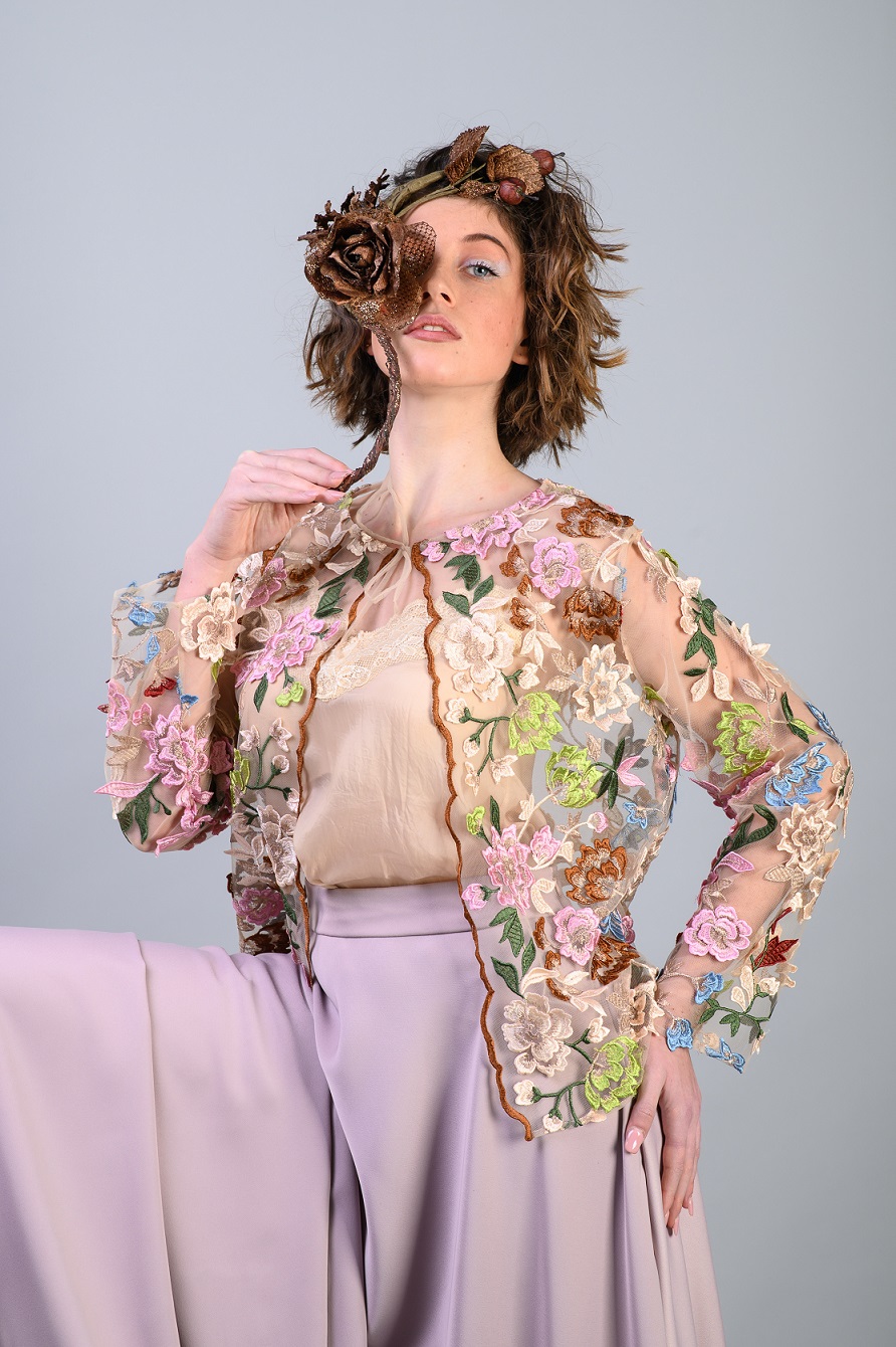 Materiali prestigiosi, impreziositi da pizzi con ramage floreali e ricami realizzati a mano, si accoppiano a sorprendenti effetti cromatici e ad un design pieno di vita, spiegato simpaticamente dalla stilista: “La vita è troppo breve per vestirsi in modo noioso!“.