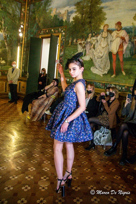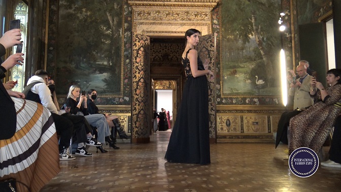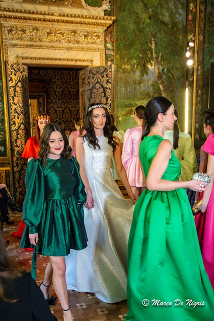 Come di consueto, la kermesse, ha visto l’esposizione al pian terreno delle collezioni di vari fashion designers ed al primo piano, presso le Sale Nobili del palazzo, le sfilate.