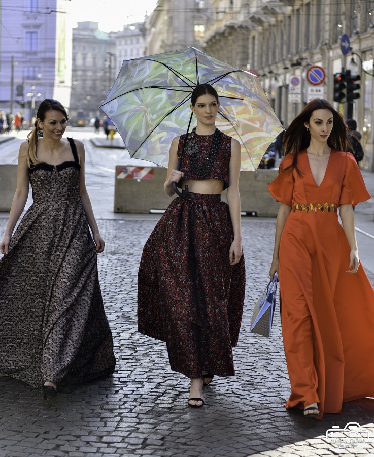 I brand partecipanti sono stati: Pierangelo Masciadri, che ha mostrato come la moda può incontrare l’arte con la sua collezione di ponchos in pregiata setaconcludendo con un defile finale di grande impatto scenografico; Ramaidress, giovane fashion designer del varesotto con una collezione colorata e giovanile che richiama al gusto romantico; Giordana Varon, designer romana che ha proposto una collezione di abiti elegante e raffinata che ti trasporta direttamente tra i vari quartieri di Parigi.