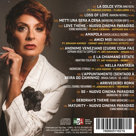 L’artista, che vanta una lunga carriera internazionale sviluppata principalmente in Brasile e negli Stati Uniti, è accompagnata in questo nuovo progetto dal produttore e arrangiatore newyorchese Paul Ricci (chitarre) e da tre stelle del panorama jazzistico brasiliano quali Tiago Costa (pianoforte), Sidiel Vieira (contrabbasso), Riccardo Mosca (batteria).