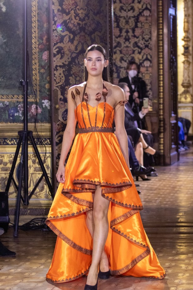 “La mia collezione è stata ispirata dai fiori… e non perché io mi chiami Flora… Mi hanno dato modo di spaziare con le idee dando libero sfogo alla mia creatività. Ne è nata una collezione elegante dai colori anche forti con particolari che ricordano o propongono riproduzioni di veri fiori”.