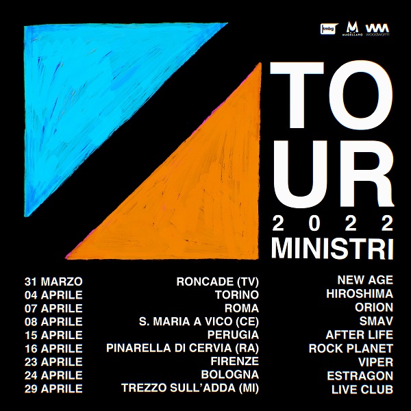 Pronti a risalire sul palco da fine marzo, i Ministri scaldano l’atmosfera con il nuovo singolo SCATOLETTE, uscito il 4 marzo per Woodworm. La band torna per scrivere una nuova pagina di musica dopo il singolo NUMERI, una canzone che nasce come uno sguardo sul mondo e diventa un’azione nel mondo.