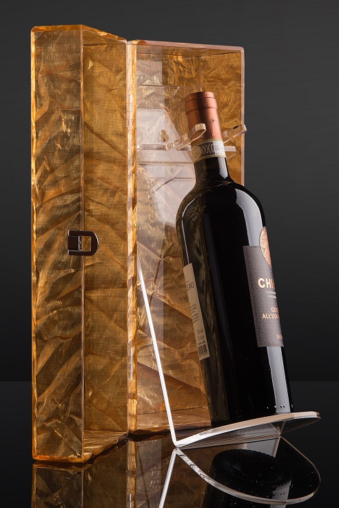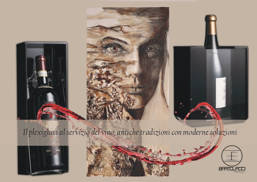 È il mondo nuovo di Elisabetta Rogai, il suo incontro con le opere di Bartolacci Design in plexiglas, un invito a guardare il mondo del vino da un punto di vista diverso.