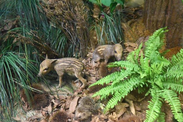 Diorami che, all’ombra di salici, querce, castagni e pini silvestri, ospitano cinghiali, caprioli, volpi, tassi, nutrie, aironi, poiane, salamandre, libellule e molte altre specie, permettendo al visitatore di osservare uno spaccato del territorio con le sue piante ed i suoi animali.