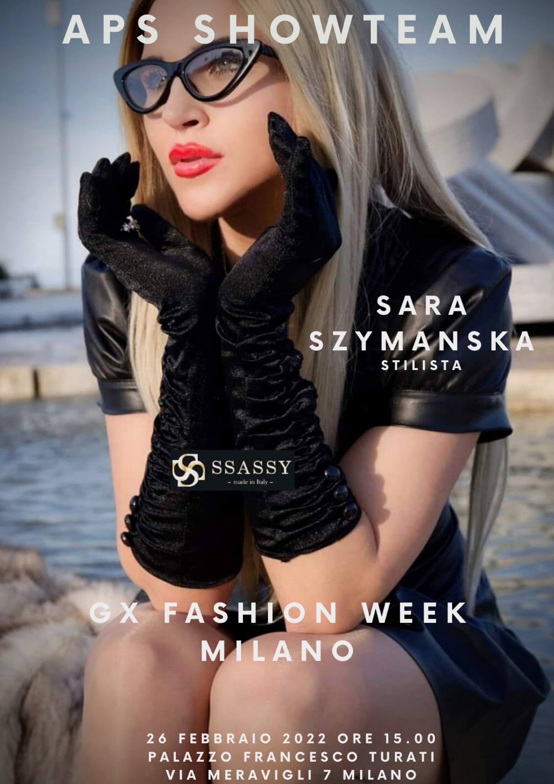 Sara Szymanska con il suo marchio SSASSY è stata una delle protagoniste della sfilata organizzata da Gentiana Dervishi a Milano per l’APS ShowTeam, il “GX Fashion Week”.