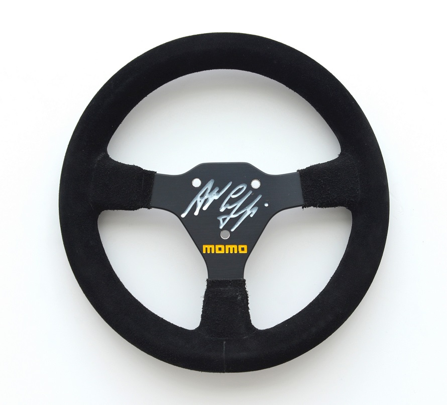 Il volante MOMO, autografato, è quello usato dal pilota italiano nel GP del Messico del 1988 in cui, rimasto senza freni sul rettilineo, si schianta contro René Arnoux della Ligier. Il volante da lui impugnato in tale occasione, è ora esposto al Museo Nicolis proprio accanto a quello utilizzato da Arnoux nella stessa gara. L’occhio più attento potrà notare come, a causa del forte impatto, il volante del pilota bresciano sia incurvato.