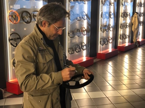 Le collezioni del Museo Nicolis si arricchiscono di due nuovi cimeli: il volante e la tuta di Alex Caffi, ex pilota F1 che è andato personalmente per donare e autografare il suo volante.