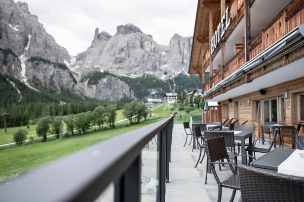 Le camere sono state ingrandite e rinnovate con grandi vetrate che amplificano la vista sulle montagne e dotate di pavimenti in legno naturale e di grandi balconi privati oppure terrazze con vista sulle vette o sui paesini di Colfosco e Corvara.