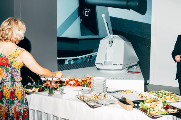 Nikita Teryoshin ci porta invece dietro le quinte del business mondiale della difesa e il back office della guerra, esattamente l’opposto di un campo di battaglia: un parco divertimenti per adulti di dimensioni esagerate con vino, finger food e armi luccicanti. Qui i cadaveri sono manichini o pixel sugli schermi di enormi simulatori. Bazooka e mitragliatrici sono collegati a schermi piatti e le fasi della guerra vengono inscenate in un ambiente artificiale, davanti a una tribuna piena di ospiti importanti, ministri, capi di stato e mercanti di armi. Le immagini di cui si compone il progetto iniziato nel 2016 e tutt’ora in corso, provengono da 14 esposizioni di settore tra il 2016 e il 2020 in Europa, Africa, Asia, Nord e Sud America (Polonia, Bielorussia, Corea del Sud, Germania, Francia, Sudafrica, Cina, Emirati Arabi Uniti, Stati Uniti d’America, Perù, Russia, Vietnam e India). L’obiettivo ultimo di questo progetto è scattare foto in ogni continente al fine di porre l’attenzione sulla dimensione globale di questo business.