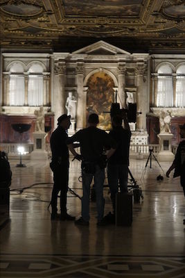 Un racconto filmico originale, una coproduzione internazionale – Kublai Film, Videe, ZetaGroup, Gebrueder Beetz Filmproduktion – in collaborazione con la rete televisiva franco-tedesca ARTE, con la regia di Erminio Perocco e le musiche di Carlo Raiteri e Teho Teardo – ci conduce nei luoghi che videro muoversi e operare Tintoretto nella Venezia del Cinquecento, rievocando le atmosfere del tempo, le luci della città vibrante sull’acqua e i colori dei preziosi pigmenti che giungevano nella Serenissima come in nessun altro luogo e di cui Jacopo, figlio di un tintore, sapeva servirsi con straordinaria maestria.